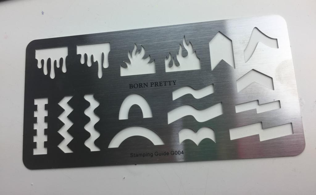 Placa guía: https://www.google.com/url?hl=es&q=http://www.bornprettystore.com/born-pretty-stamping-guide-templates-stainless-steel-full-french-nail-tips-star-heart-cross-p-39624.html&source=gmail&ust=1496261141350000&usg=AFQjCNFQnSdfYN2YCh2Yj6WJ7pF18J0S3A