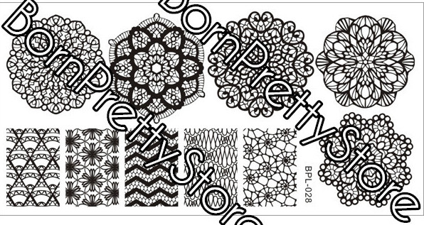 La placa en cuestión es la BP-L028 y está repleta de diseños de encaje. Para salir de las tradicionales decoraciones de encaje en blanco y negro hoy hice dos diseños, uno más tranquilo en verde y crema y otro en neón y negro.