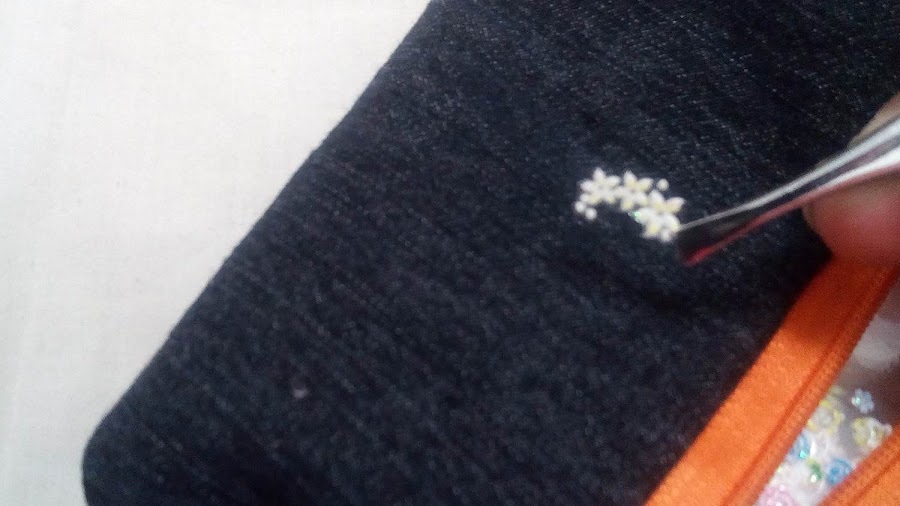Ahora y para finalizar el decorado, pegué con una gotita de esmalte transparente, un cristalito