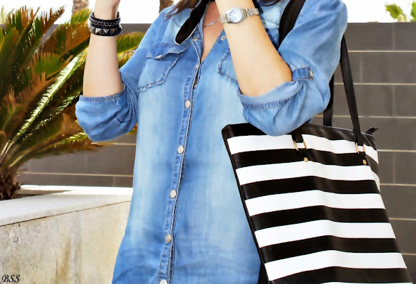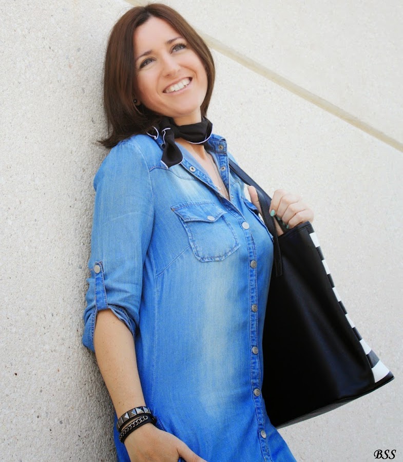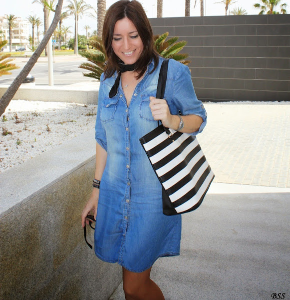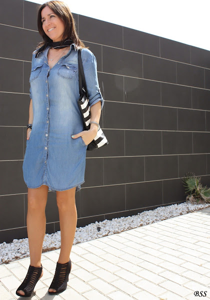 Mi look de hoy se inspira en ella, un outfits fresco, cómodo y casual en el que toma protagonismo el vestido denim de nuevo en tendencia esta temporada.