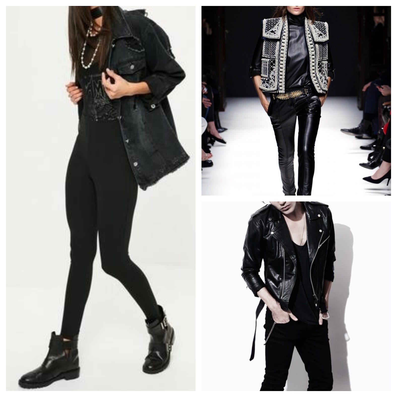 Es un estilo muy marcado, con el negro como color protagonista. En su lado más extremo, tenemos el estilo Grunge y también el Gótico, que no son iguales en absoluto pero sí tienen ciertos elementos en común. Se caracteriza por: prendas de cuero, cazadoras, apliques en metal, color negro, pantalones gastados, botas, flecos.