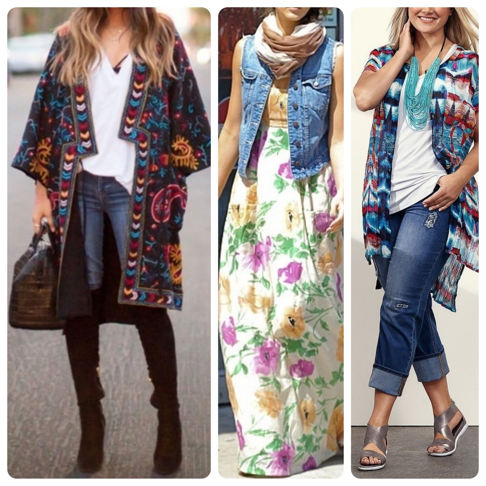También puedes verlo como boho-chic, pero esto es solo para hacerlo más atractivo o más moderno. Se caracteriza por: prendas vaporosas y cómodas, colores tierra y cálidos, complementos como sombreros y chalecos, estampados étnicos y florales.