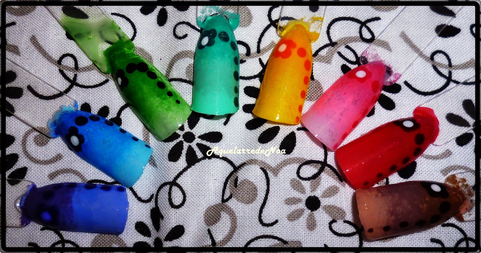 ...y como os contaba mas arriba, mis uñas están de descanso pero eso no significa que pueda estar quieta sin acercarme a un esmalte así que he hecho estas pruebas en otros colores: