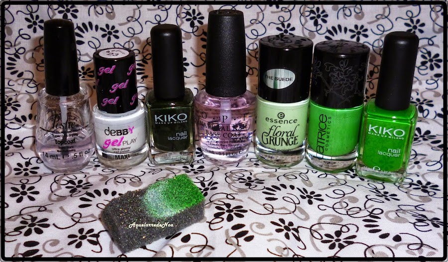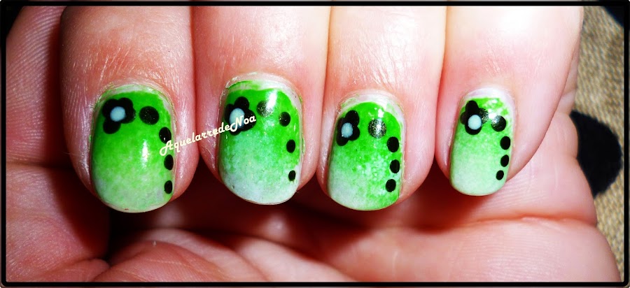 Pues en esta ocasión os traigo un degradado con esponja en tonos verdes y decorado con una flor.