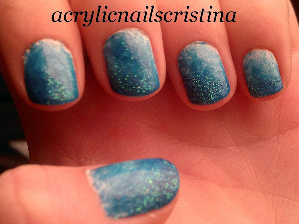 -Ponemos una gota de esmalte en una hoja, un plástico, en papel de plata... los diferentes tonos de azul.