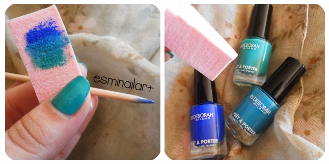 Siempre os digo que yo el degradado lo realizo con una esponja de maquillaje, pintando las franjas de esmalte en el orden que haya escogido en la esponja directamente y luego mezclando un poco los esmaltes con un palito de naranjo. Aún así, os dejo aquí un tutorial de ManiCute en el que lo explica muy bien.