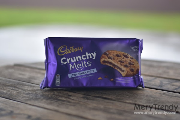 Las Crunchy Melts de chocolate de Cadbury son unas irresistibles cookies con chips de chocolate con delicioso chocolate en el centro - crujiente por fuera, blando por dentro... ¡e incluso están mejor calentadas en el microondas! Lo más destacable de estas galletas es su relleno, que resulta en una explosión de chocolate :) Creedme cuando os digo que son un súper capricho. A mí me encantán, sobre todo para merendar con un vaso de leche o una taza de café ó té; las caliento unos 12 segundos... et voilà! Para más info, os diré que contienen trocitos de chocolate con leche (15,4%) y relleno con chocolate con leche (4,5%).