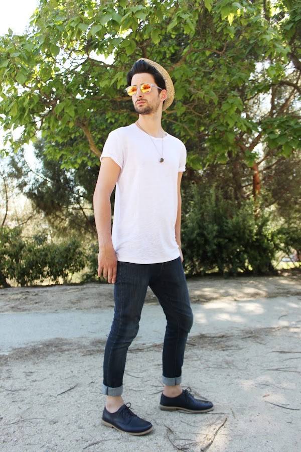 Dani lleva un look muy sencillo pero con complementos que le dan el punto. Todo es de H&M menos las gafas, de Flyhigh y collar de Lanthane. Me encanta ese colgante porque es una pieza única que pertenece a la colección Texturas. Parte de miga de pan que tras un proceso que aunque me lo ha explicado varias veces sigo sin entender, se convierte en esto. Las gafas son otro elemento muy tendencia por el vidrio espejado en tonos naranjas. A Flyhigh les conocimos el viernes cuando me compré estas gafas y os los recomiendo mucho, tienen modelos geniales y muy buenos precios.