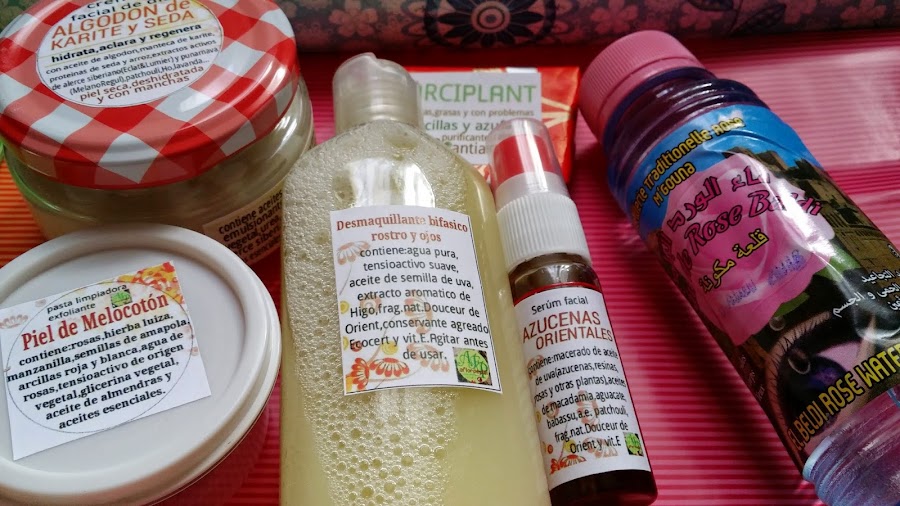 -y un agua de rosas para tonificar el rostro y también un plus de alegria y bienestar;traida directamente de una destileria cerca del Valle Kelaat M"Gouna,Marruecos.