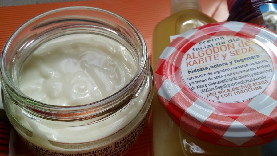 -con su cremita de "Algodón de Karite y Seda" que a mi una me tiene encantadisima,con esa textura y sus ingredientes...hidrata,aclara y regenera