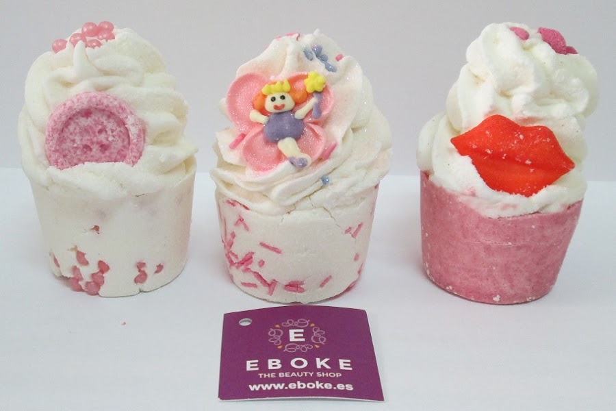 Cómo muchas sabréis, ya no tengo bañera, ¡snif!, y me da una rabia no probar estas preciosidades de bombas de baño..., ¡que ni os lo podéis imaginar!, jejeje. En la web "Eboke", disponen de un montón, todos diferentes, con unos diseños super bonitos y originales, como los que os enseño a continuación que tienen forma de pastelito, jejeje. Os explico (de izda a dcha):