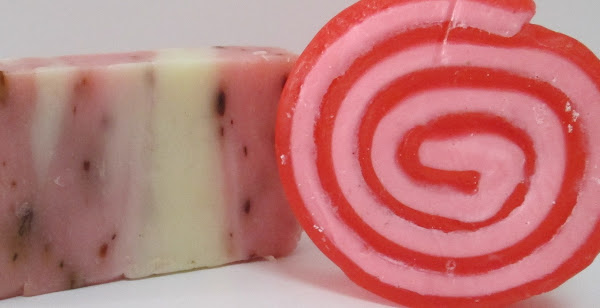 Esta gama de jabones, me parecen de los mas originales y llamativos, ya que cómo podéis ver, van enrollados, jejeje. El jabón de glicerina vegetal que os enseño yo, también es el de "Rosa Mosqueta", jejeje, que como podéis ver, es bastante grande, ya que contiene 100 gramos de cantidad. Pero lo interesante de él, es que no tiene un aroma floral, sino, más bien, como afrutado y algo dulzón... Es decir, en concreto a fresa y nata.