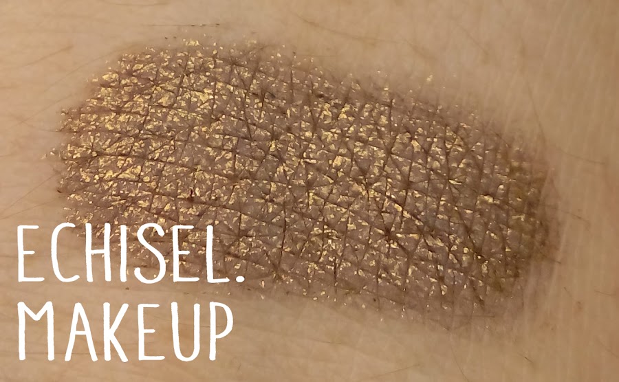 Este pigmento tiene un color muy especial. Es un dorado verdoso super potente que tornasola a marrón. ME ENCANTAN ESTE TIPO DE PIGMENTOS!!! porque te dan mucho juego a la hora de realizar looks con ellos, ya que depende del color que coloquemos debajo puede cambiar totalmente el resultado.