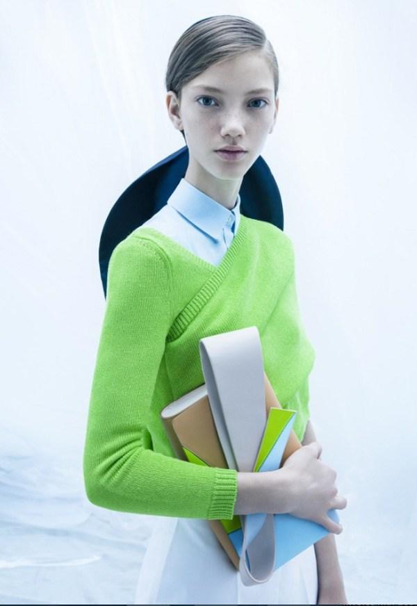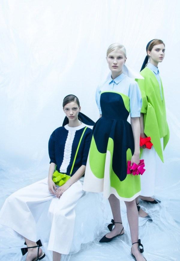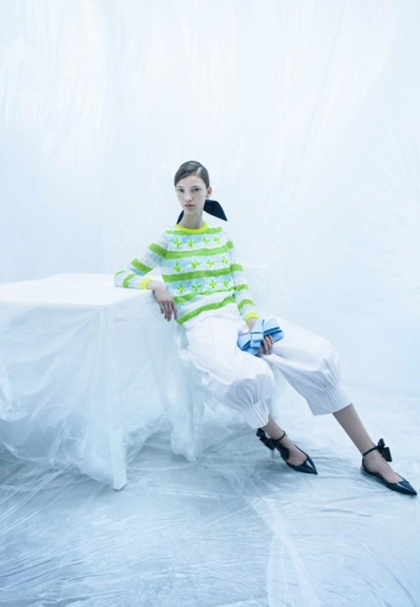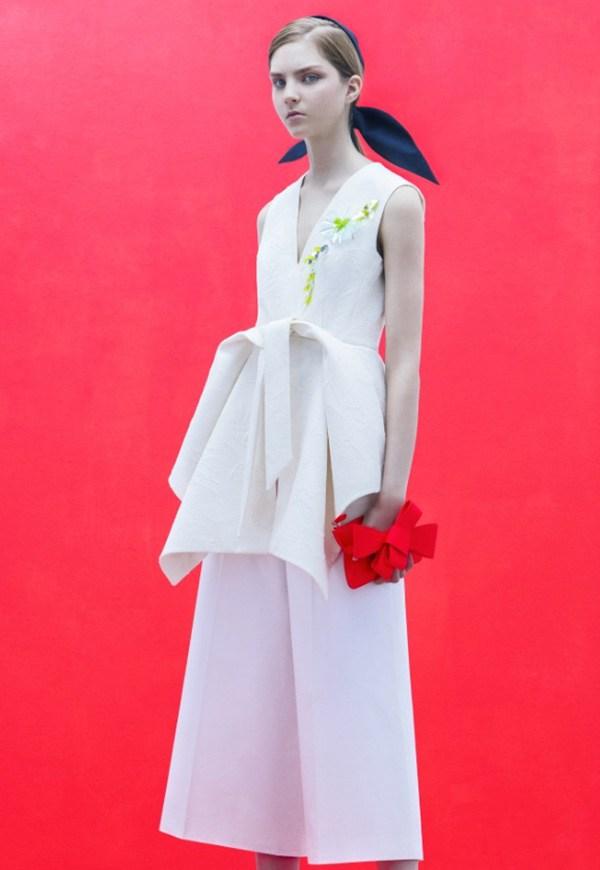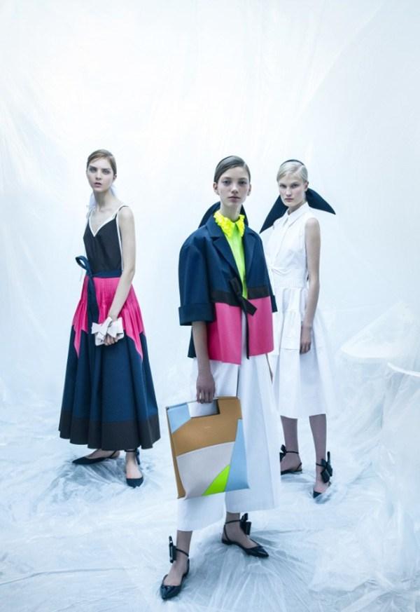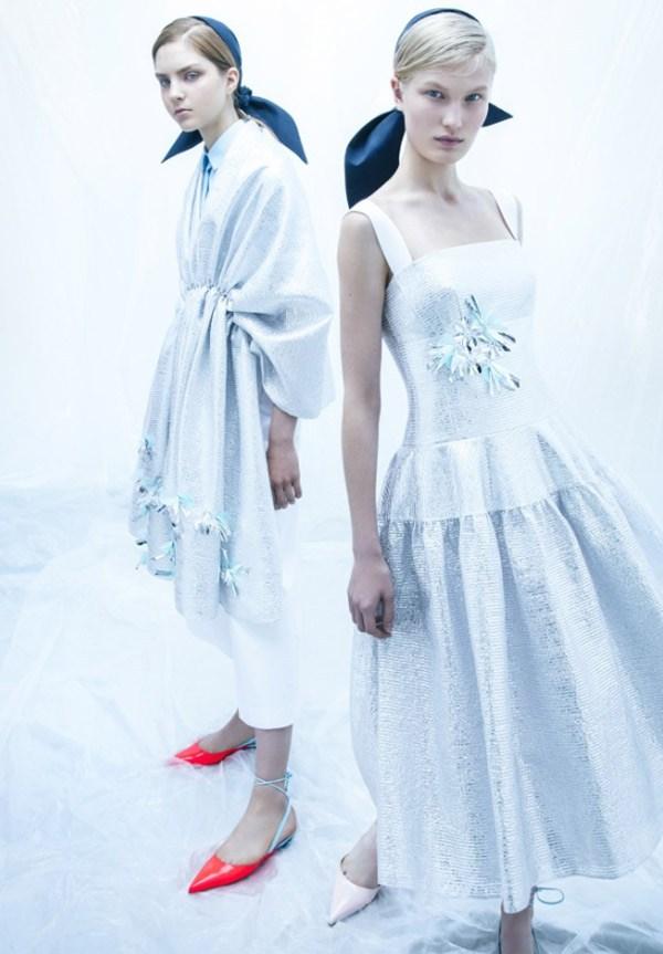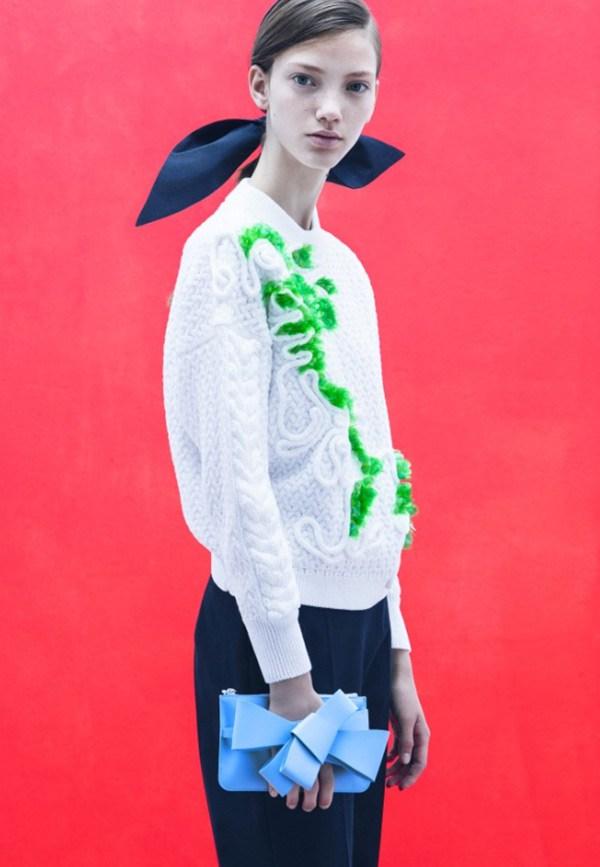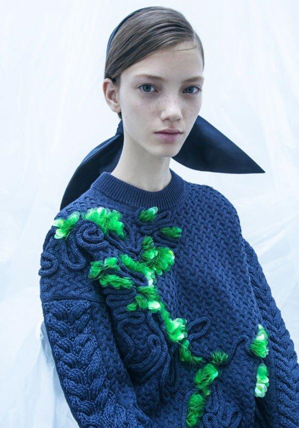 Por primera vez, Delpozo presenta su interpretación náutica particular, con rayas bretonas en organza con un lazo incrustado, además de un estampado jacquard de inspiración marina trayendo los arrecifes del océano con un bordado de cristales verde flúor, del mismo tono que el lago. Punto con aranes y trenzas aplicadas a mano en tonos náuticos o un punto con efecto piqué perlado con bordado geométrico son la colección de punto para la temporada.