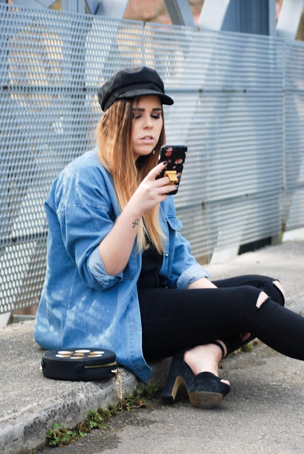 La he combinado con un total black (muy en mi línea) y para variar un poco he cambiado los complementos. Esta vez he elegido un bolso en forma de película de cine (que me parece tan adorable como original) y mis nuevos pendientes, también de Zaful. Estos ya los habéis visto un par de veces por Instagram, son de mis favoritos.
