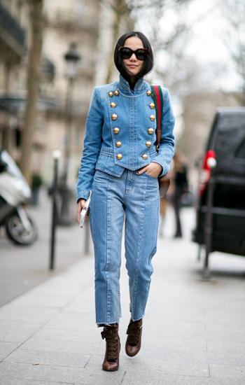 -Chaqueta de doble botonadura y botas acordonadas.