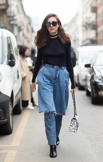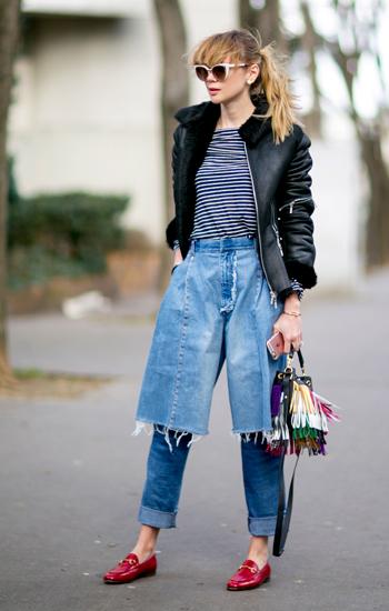-Bermudas + vaqueros, ambos deshilachados: nueva tendencia que se repite por las calles de la semana de la moda.