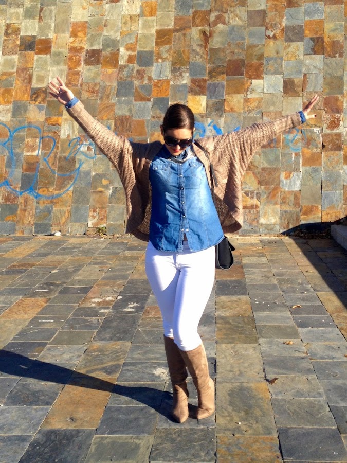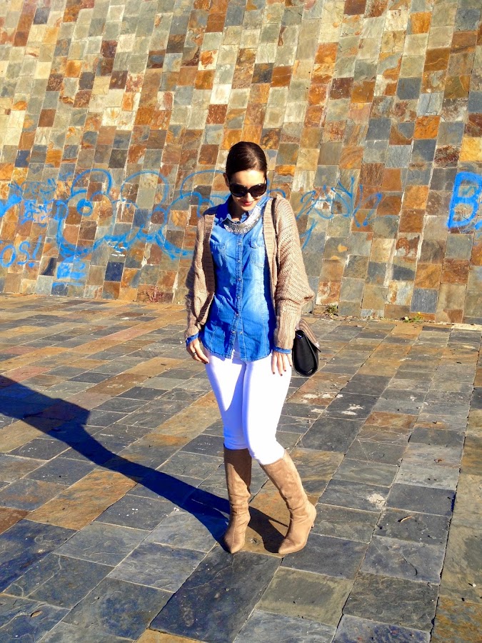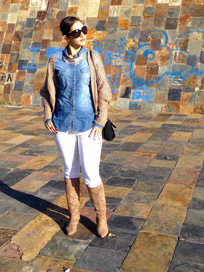 Espero que os guste el look de hoy. Os informo que estamos de sorteo a través de Instagram de un maravilloso collar de Shiftstore (podéis seguirme como @sweetlauryn). Gracias por vuestras visitas y comentarios.Good night loves! How is going your holidays? I hope they were good, mine were very quiet. I show you the outfit I wore to go to lunch at mom"s home this sunday. A comfy outfit with denim shirt, white pants and beige jacket. Like complements, my new bag of Stradivarius and my beige boots.