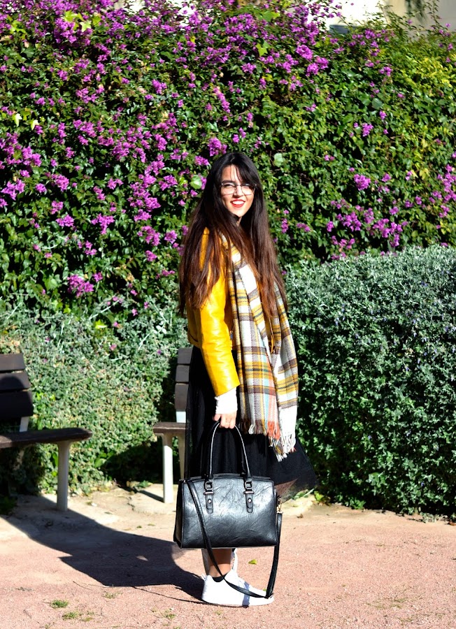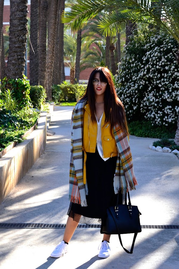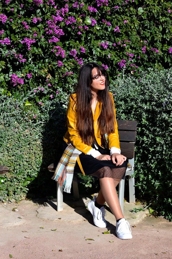 Esta vez, he querido darle al look un aire sporty y para ello he combinado una falda de tul que compré en Stradivarius en rebajas por tan solo 5/6, no recuerdo bien, blusa blanca, mis queridas y amadísimas nike air que no sé crear un look sin ellas y finalmente para darle vidilla al asunto la famosa y tan aborrecida biker mostaza. Asumo que en los comentarios algunas me pondréis lo mucho que odiáis y la tenéis vista, pero chicas, era inevitable.