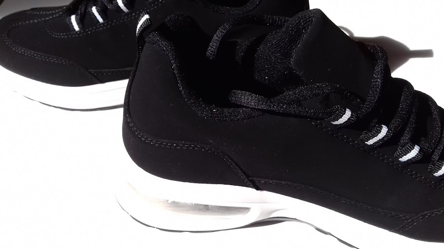 ¡Las zapatillas son preciosas! Nada más verlas en la tienda online me enamoraron, seguramente son copia de alguna marca famosa, pero ahora mismo no caigo, ¿puede ser Nike? Me encanta este tipo de calzado, es informal, cómodo y te lo puedes poner con un montón de looks todo el año. Perfectamente rematadas en un maravilloso color negro, que va con todo. Escogí una talla más, la 39 como siempre en webs chinas, por lo que serían un 38 europeo. Nada que envidiar a cualquiera del estilo que podemos encontrar en H&M, Stradivarius, Primark... Mi única pega es la suela que se ve un poco plasticurri.