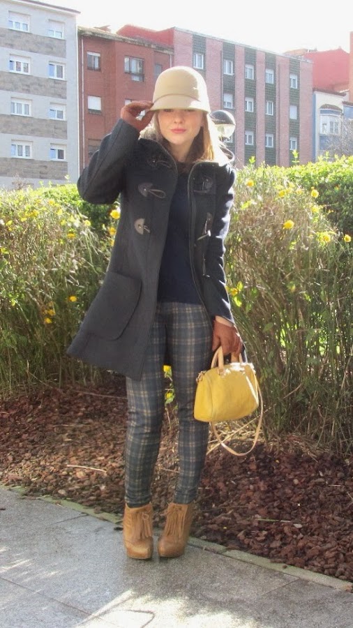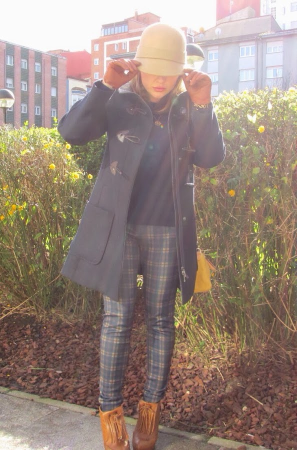 He decidido combinarla con mis pantalones de cuadros, sombrero y botines con lengüeta para darle un aire london college.
