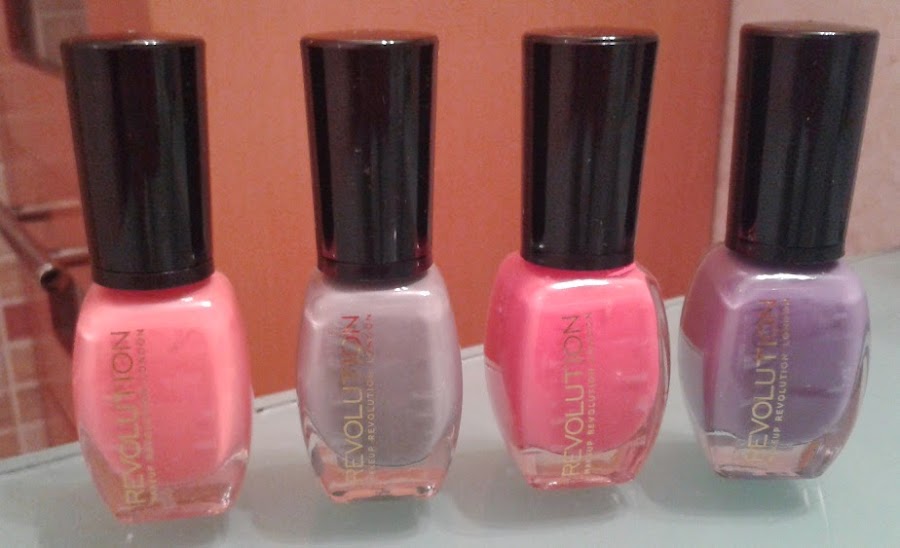 3-ESMALTES: Había muchos tonos, todos preciosos, pero elegí algunos que no tenía para no repetirme. Estos son los elegidos de izquierda a derecha: