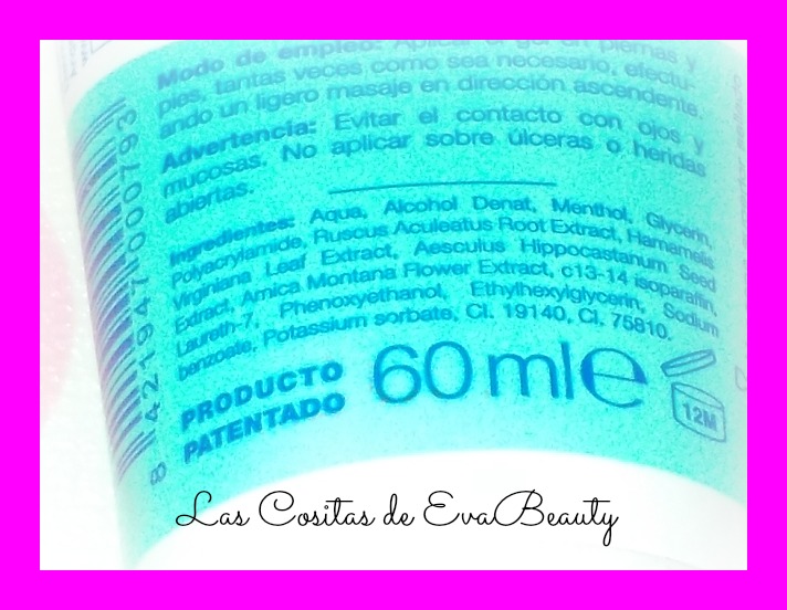 Es un gel acuoso, que se extiende perfectamente por las piernas y pies, nada pegajoso ni graso, se absorbe enseguida, y deja las piernas muy suaves.