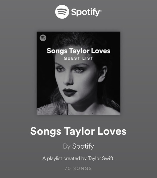 Una de las cosas que ha hecho Taylor para promocionar el nuevo álbum ha sido esta playlist de Spotify. Vale que todo lo de TS me encanta, pero es que tenemos un gusto musical muy similar y la playlist me ha parecido maravillosa. La tengo de fondo musical constantemente. Os aseguro que si os gusta ese estilo de música, os encantará.