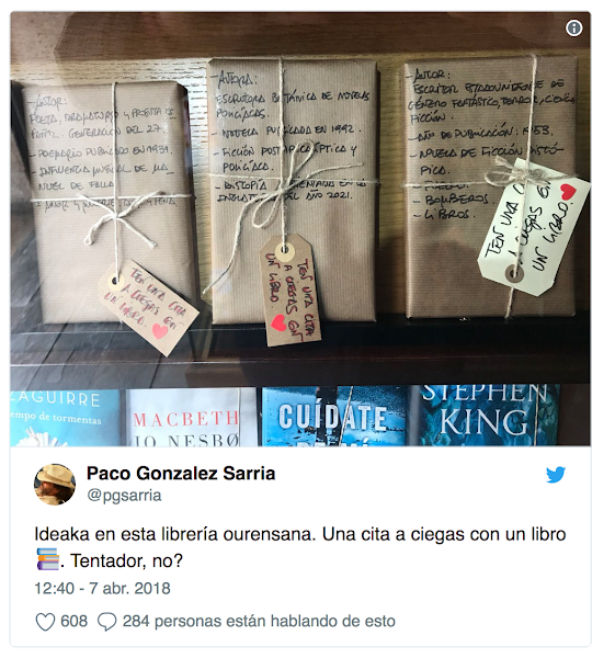 ¿Os habéis encontrado alguna vez en esa situación de que queréis leer algo nuevo pero no sabéis qué? ¿O como que deseáis hacer el mayor descubrimiento literario del año pero no sabéis cómo? Pues esta es una buena iniciativa. Estos libreros dan los datos justos sobre los libros, que van envueltos de forma que no se ven, y los clientes se arriesgan para averiguar si amarán esa historia o no. Quiero probarlo algún día.