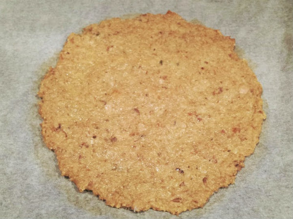Se pone encima del papel de horno y se extiende con la ayuda de la base redonda de la cuchara hasta formar una capa fina.