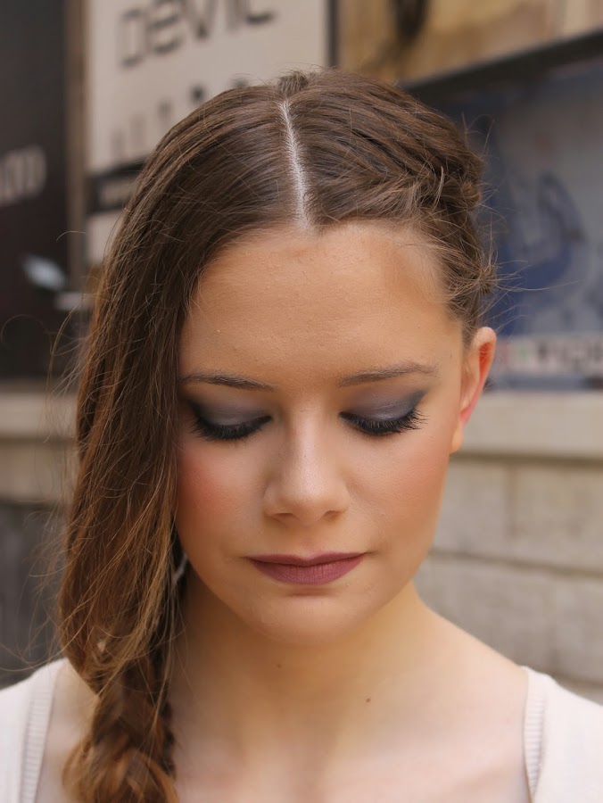 Mi maquillaje fue en tonos azules, si no recuerdo mal me hizo un smoky y los labios en color granate.