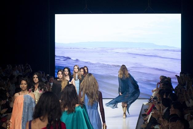 Hoy comparto con ustedes las lindas fotos tomadas durante el desfile de la diseñadora Susan Wagner en LIFWeekOI14 en el grupo de Nuevos Talentos. En esta colección Susan se inspiró en la playa Atenas de la Reserva Paracas y la búsqueda de la felicidad según los griegos. En su colección ha empleado bordados precolombinos ( el denominado ?envuelto? que se origina tanto en el Valle del Mantaro como en Huánuco), en telas naturales como gasa, alpaca y algodón, además ha usado PET (poliéster termoplástico) para elaborar varias prendas. Este material que es muy parecido a la felpa o al polar , pero se origina de una botella de plástico. A Susan le ha fascinado aplicar esta nueva materia prima, ya que no tienes que coserla, no se deshilacha y su textura es muy suave. Susan para poder comprar PET (materia prima costosa), ha hecho un convenio con L.O.O.P. (empresa social que lucha por reducir la contaminación plástica en el Perú). Además, el 2% de lo que ella paga por el PET se destina a campañas como ?Playas Limpias? y otros. Esta colección tiene una paleta de colores entre los cálidos, los naranjas, arenas, naranjas y tierras y de los fríos, los turquesas y azules del mar y el cielo. También, Susan ha experimentando en un tipo de estampación (con fotografías) y en el que no se emplean metales pesados.