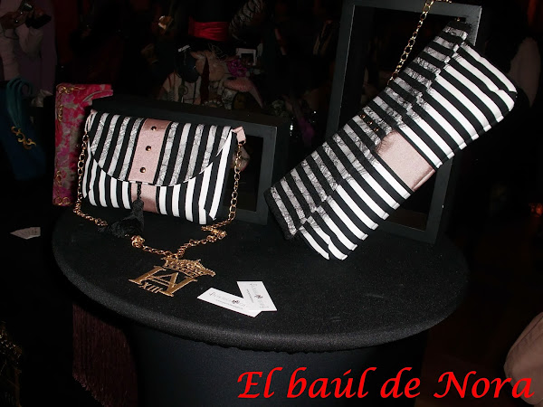 Los complementos fueron de la mano de las firmas Patricia Espejo con unos bolsos Hand Made de alta costura que enamoraron por sus brocados en tejidos como la seda . Asi como los bolsos de Alicia Moreno inspirados en los corsets los cuales rondan sus precios entre los 500 y 900?.