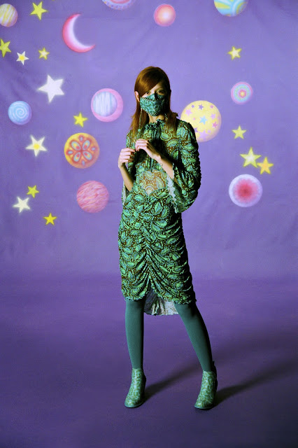 También las mascarillas han cobrado un importante papel y l@s más fashionistas l@s han incluido en sus outfits a juego con sus prendas de ropa, podemos decir que ya es un complemento más al que much@s han sacado partido, como en esta imagen de la colección de Anna Sui para el próximo Otoño Invierno.
