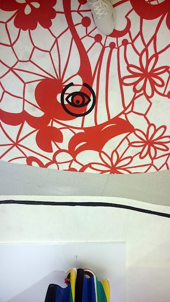 Después, y esto si que nos pareció super original, te prestaban un ipad y apuntando a la ropa de los maniquíes de la entrada, por ejemplo, en el caso de la chaqueta militar de mariposas, estas comenzaban a moverse y a aparecer mas mariposas y así con cada prenda un efecto diferente.