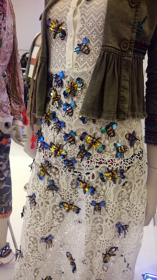 Os voy a decir la verdad, mis padres siempre han sido unos apasionados de esta marca, supongo que mi madre, por su faceta artística la ve diferente, pero yo, que me considero más sobria nunca me ha apasionado y con sinceridad esta nueva colección me ha parecido preciosa, las chaquetas militares con tachuelas y lentejuelas, los vestidos de encaje con las abejas de pedrería, me enamoraron absolutamente.