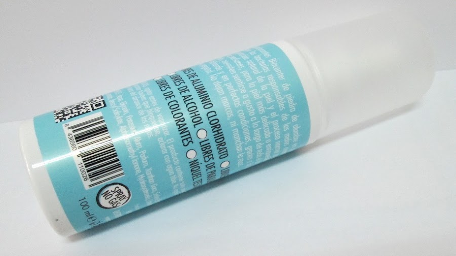 También comentaros, que al no tener nada de gas, cuando lo rocías en las zonas, parece como si te estuvieras aplicando agüita, jejeje, ya que alguna gotita de desodorante se escurre de la zona... Pero la verdad, es que luego la piel lo absorbe bastante rápido y dejando un sutil aroma muy agradable (poco duradero, ya que a las pocas horas desaparece por completo).