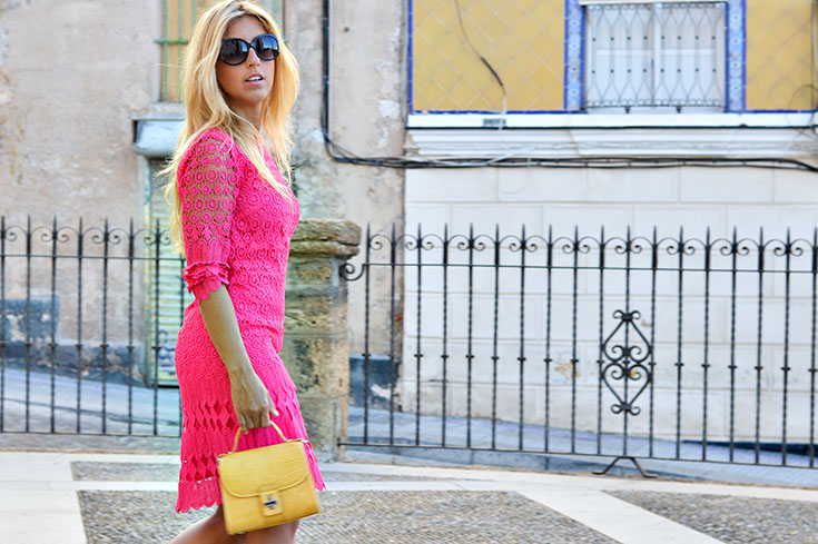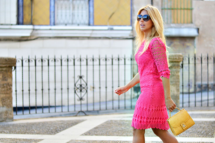 Fuchsia lace dress: Derhy / Heels: Mango / Bag: Zara