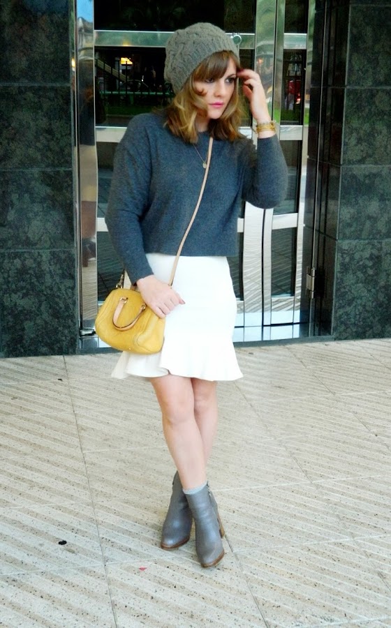 Un simple jersey y una falda de colores básicos cambian por completo al añadirle los complementos que aportan al look la personalidad de la persona que lo lleva.