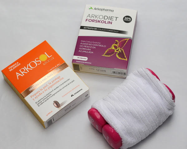 Como siempre son tan detallistas y originales en sus paquetes, Arkopharma me envío este pack, con las cápsulas Arkosol, que son una maravilla para usar ahora, antes de que venga la época fuerte de calor y de tomar el sol ya que preparan la piel para la exposición solar, la protege y ayuda a su pigmentación. También nos traía Arkodiet Forskolin, que voy a empezar a usar en breve y dos mancuernas y una toalla, porque sin ejercicio, todo se queda a medias, ¡una genial idea!