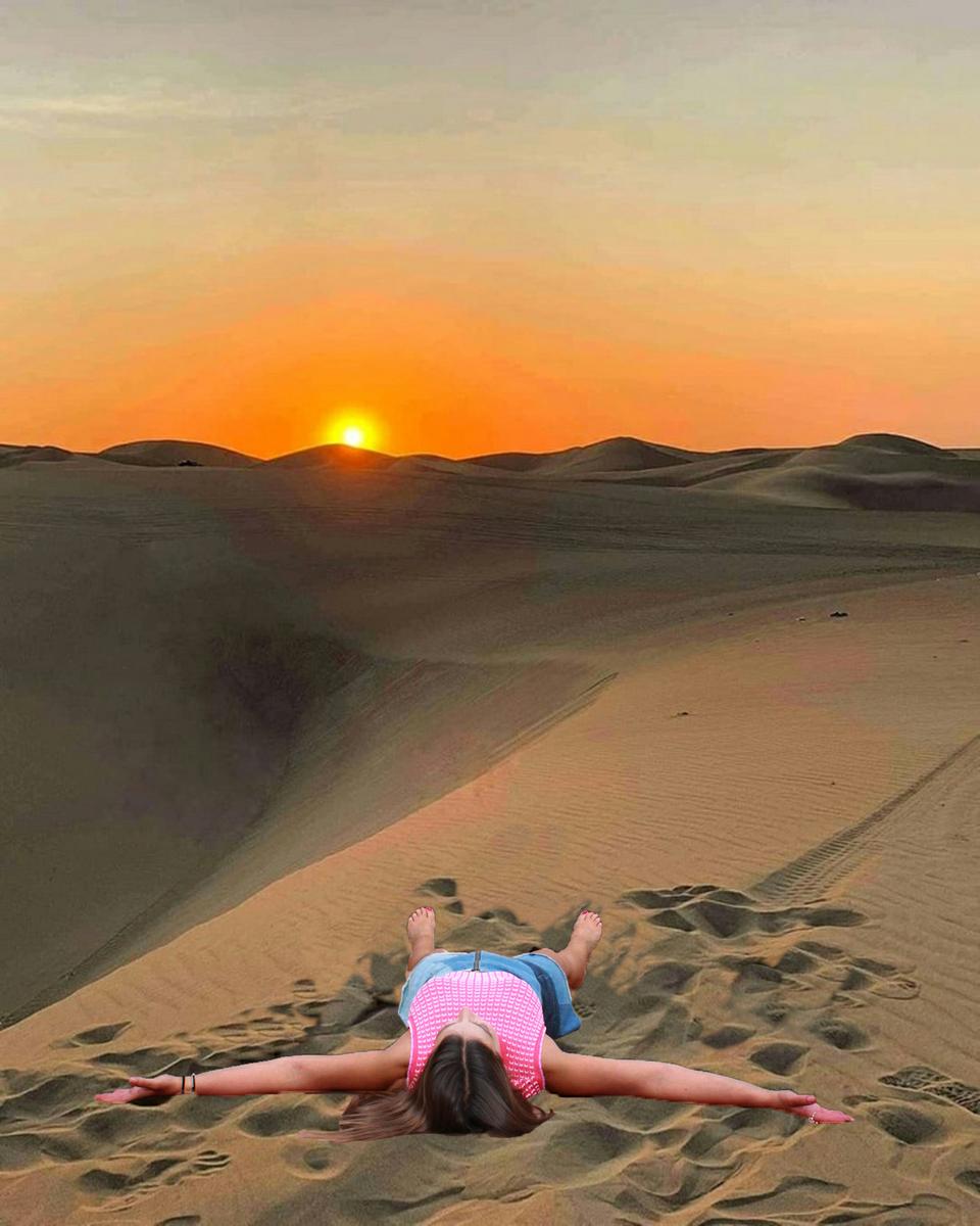 y como colofón final a un intenso día, una maravillosa puesta de sol en un lugar mágico, rodeado de arena y silencio.