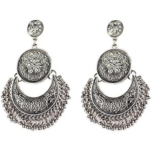 Vintage Engraved Flower Beads Moon Earrings - Silver, enlace directo Aquí