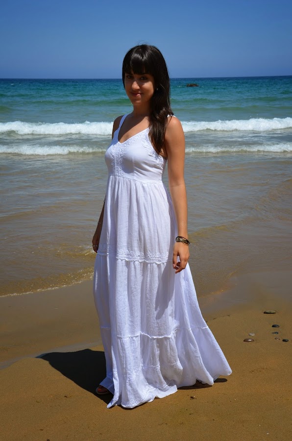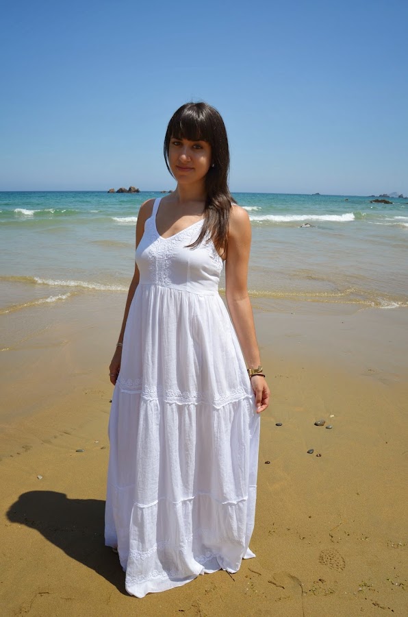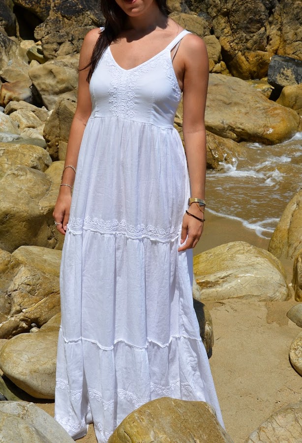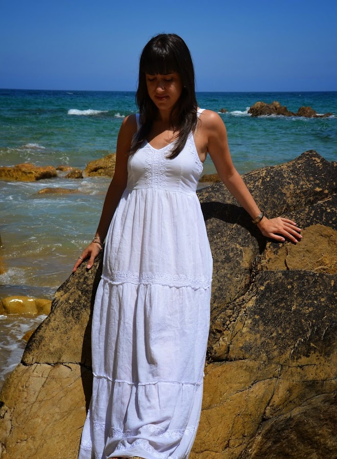 Para ir a la playa me gusta ir cómoda y desde que descubrí los maxi-vestidos me he aficionado a ellos, son comodísimos y fresquitos, y elegí para este día el vestido Orissa en color blanco, de estilo muy ibicenco de la firma española Hippyssidy. Ya os lo había enseñado hace unos meses, pero por aquel entonces el tiempo no acompañaba mucho, así que como os prometí, aquí lo tenéis con un escenario mas veraniego :)