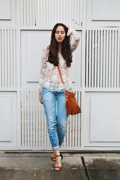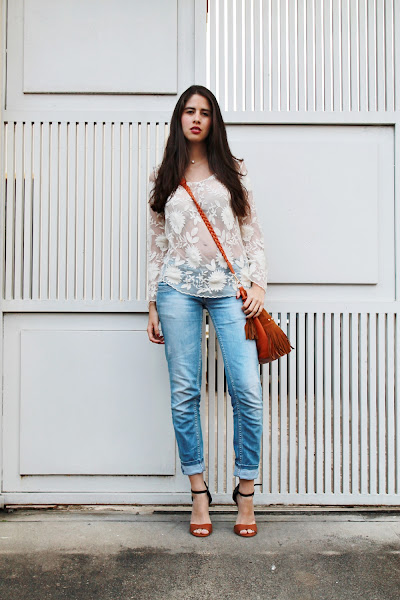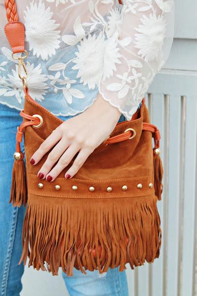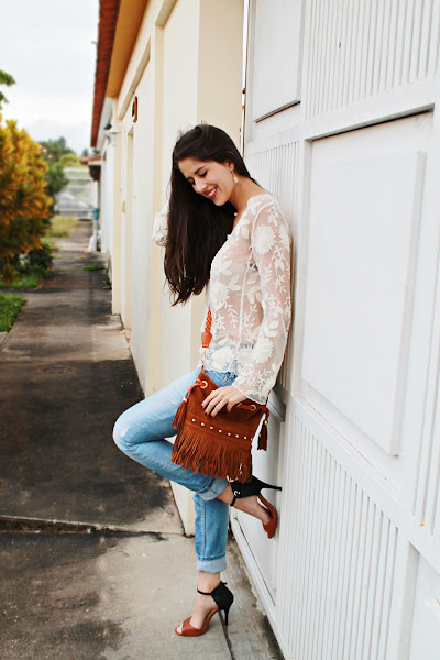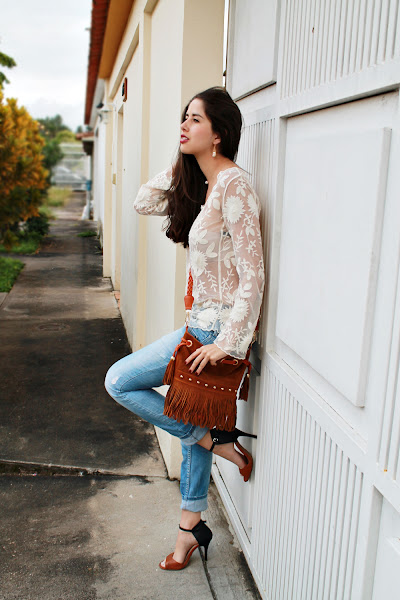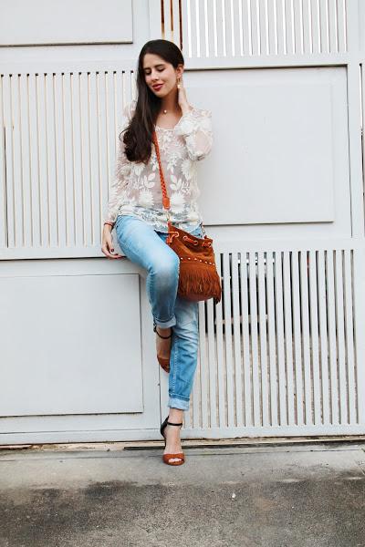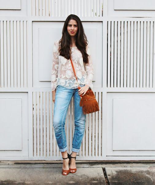 Lo combine con esta camisa de transparencias que me han visto muchísimas veces (creo que voy a empezar una nueva sección del blog) unas sandalias bicolor, perlas de accesorios y este nuevo hermoso bolso de flecos que es el AMOR total y mi nueva obsesión.