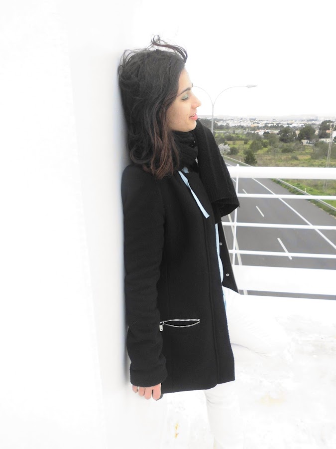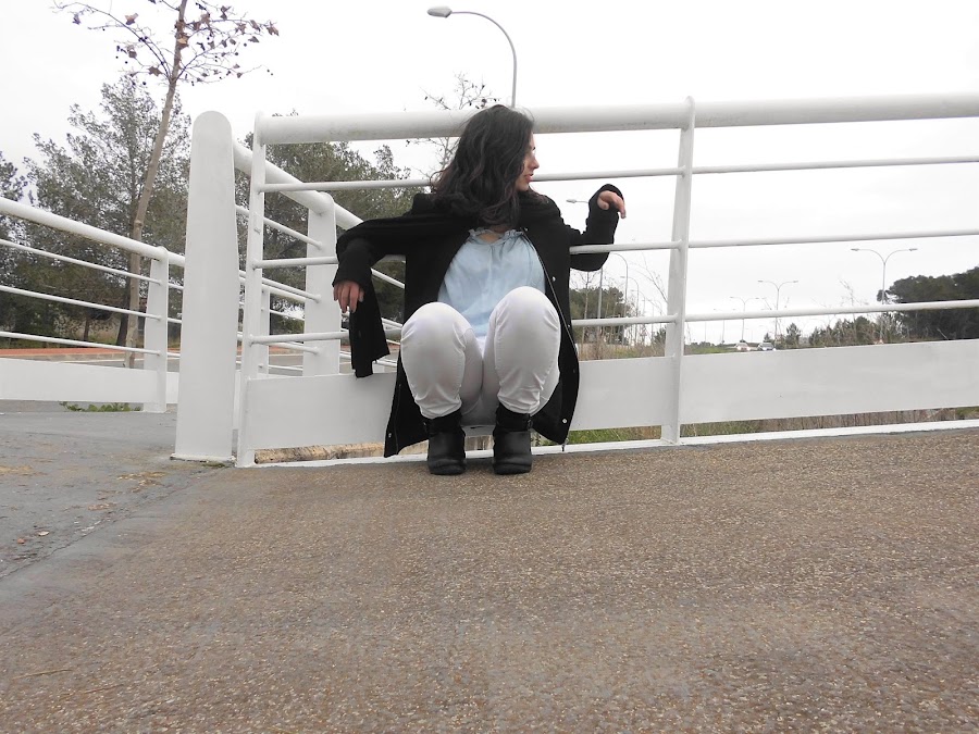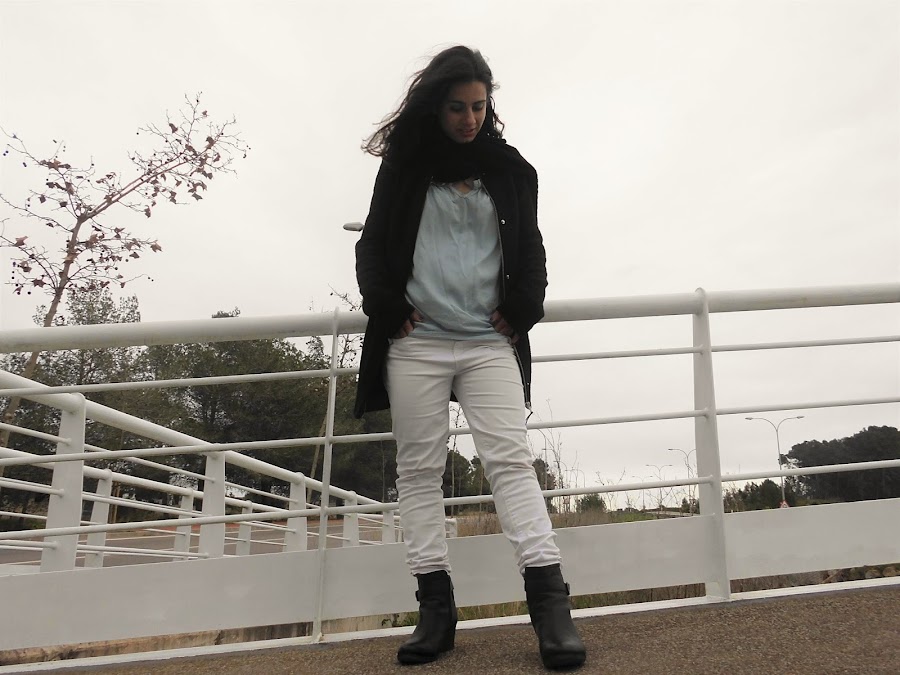 To complement the blouse I wore it with white pants that matches with the embroidery of the sleeves. And the rest of the outfit, the classic black. Hope you like it.