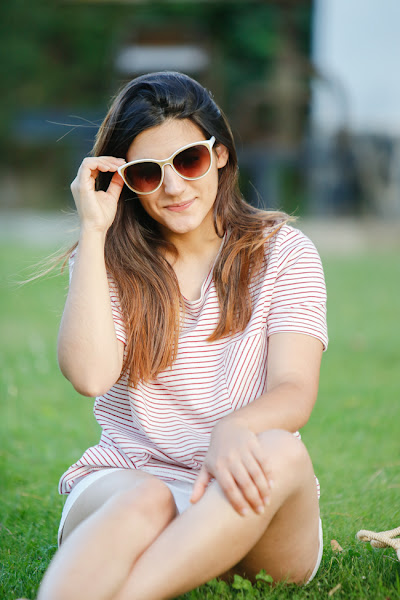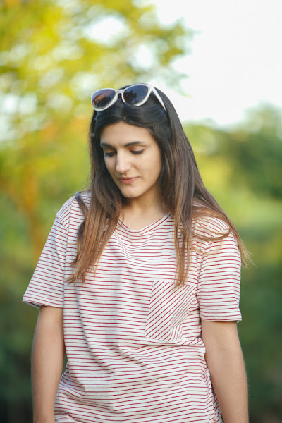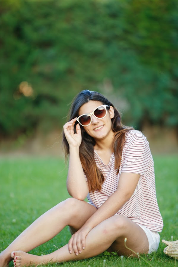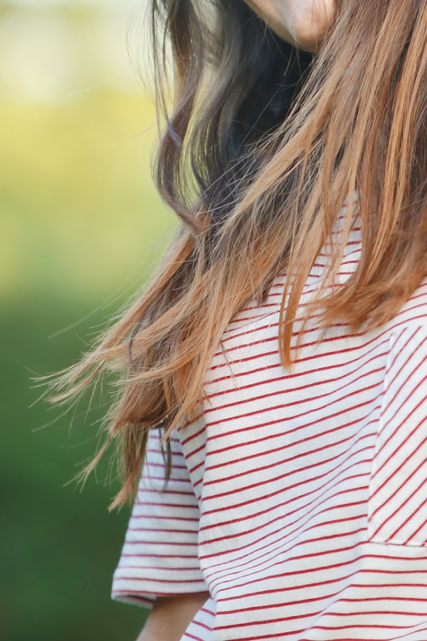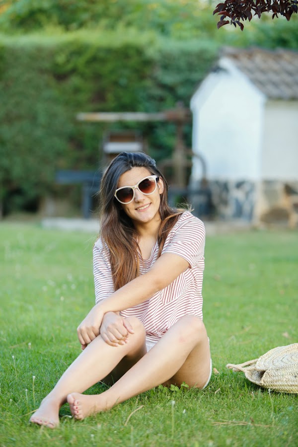 Como ya dije en mi pasado post, las camisetas de rayas son uno de mis básicos del verano, en todas sus formas. El estilo marinero es uno de mis fetiches y siempre he pensado que un buen print de rayas hace que cualquier estilo pase de regular a bien. Esta camiseta de las fotos, en concreto, la compré en Zara por, ALUCINAD, ¡3 euros! Fue en las rebajas de invierno y recuerdo ese día como si fuera ayer. Fue mi día. También compré este maxibolso burgundy que llevo a trabajar muchísimos días. Estoy literalmente enamorada de esta camiseta. Es cómoda, bonita y queda bien con casi cualquier cosa.