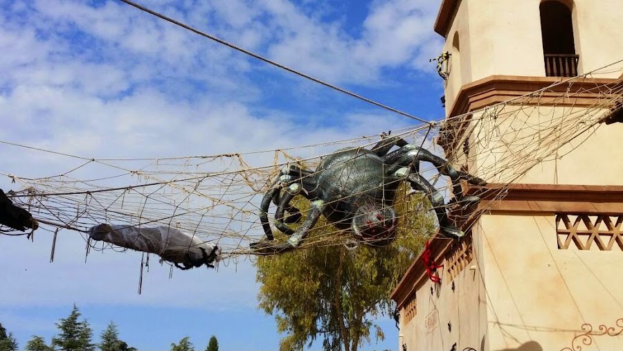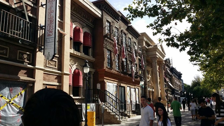 El parque estaba completamente decorado de Halloween, todas las calles, restaurantes, los personajes iban disfrazados, cuando paseabas por las atracciones te iban saliendo figurantes disfrazados de monstruos, de zombies, fantasmas? bastante currado estaba la escenografía.