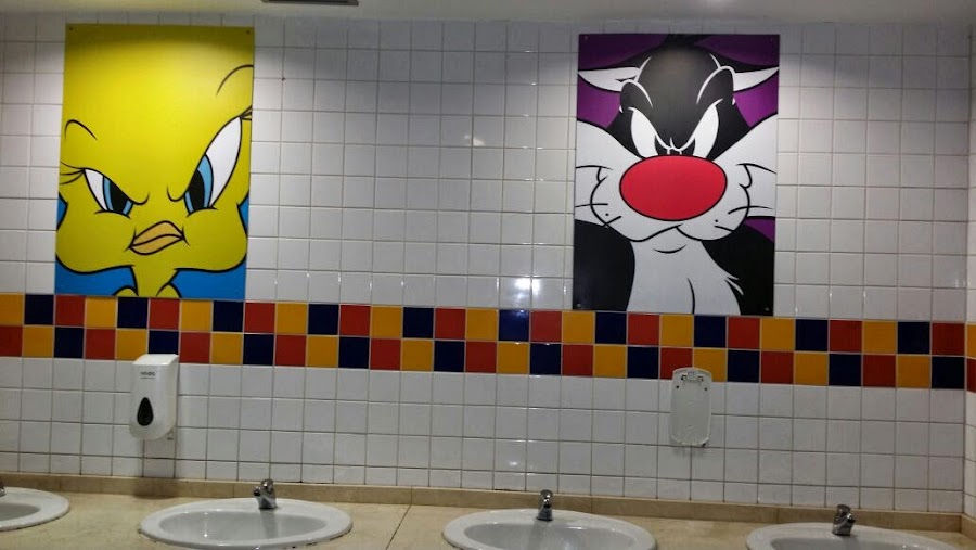 Los aseos del parque también están decorados con los personajes de la Warner.