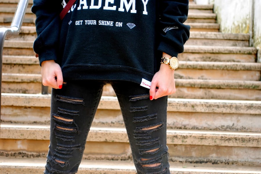 En cuanto al look de hoy es muy básico, un "total black" con el detalle de la cazadora vaquera.
