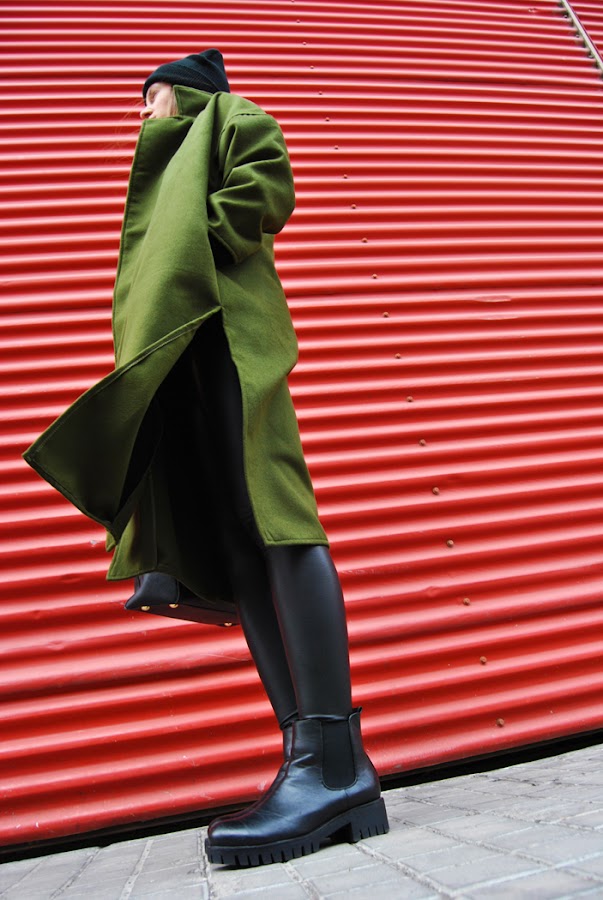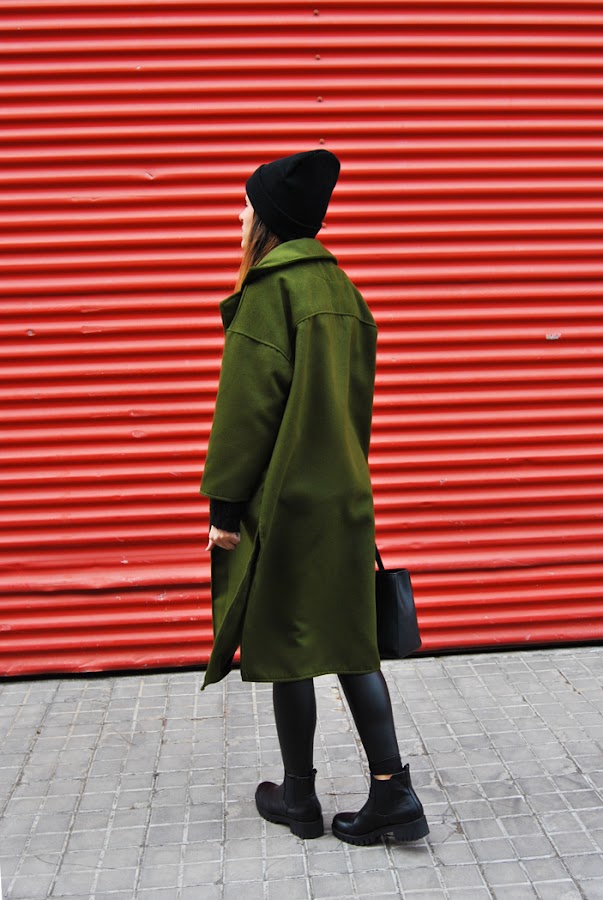 He escogido un jersey de punto gordo oversize, leggings efecto piel, gorrito de lana negro y botines con suela track. La estrella de este outfit es mi nuevo abrigo de SheIn, lleno de detalles como las mangas tres cuartos, solapas súper grandes, aperturas laterales, corte oversize, hombros caídos... No me digáis que no es una chulada??